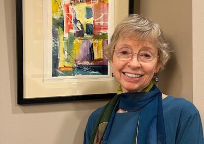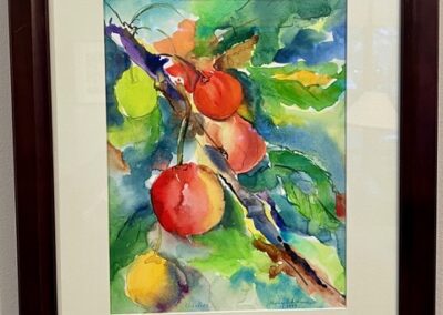I started watercolor painting about 10-11 years ago, after only dabbling with it as a child. I always viewed myself as the least artistic of the 5 daughters in the Dame family. In my mid-60’s, I browsed through a Eugene Parks & Rec catalogue and a 3-day class at Willamette Oaks – “Introduction to Watercolor Painting” – caught my eye. I had always loved the look of watercolors, so it intrigued me. However, my first reaction was, “No, you can’t do this so late in life. You are not artistic!” The next morning, when I woke up, I felt adventurous and decided to sign up. That was the beginning. Watercolor painting is probably the most difficult medium to begin with as a painter – it dries quickly and is unforgiving. Unlike oil painting, if you try to paint over an area that you don’t like, it can become “muddy”. However, watercolor painting is filled with the quality of the unknown – it is not predictable, so it is a fabulous adventure. That’s the joy of watercolor painting – you just never know how the painting is going to turn out and sometimes you can amaze even yourself.