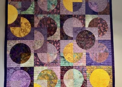 I started sewing as a 6-year-old, when my mother bought me a little sewing kit. I first made clothes for my dolls, and by the time I was 10, I was sewing clothes for myself, and made most of my clothes throughout high school. I made my first quilt when I was a freshman in college. When I came home for Christmas vacation, I decided to make a quilt to brighten up my small, beige dorm room. I made it from the many scraps of blue and green Hawaiian print fabrics that I had collected over years of sewing. I loved the resulting quilt, but also enjoyed the process, discovering the fun of using fabric to create a design. Since that first quilt, I have made dozens of quilts over the years. Many quilters open their artists’ statements by explaining that they learned sewing and quilting from their mothers, aunties, and grandmothers; that a long line of quilters in the family meant that they were destined to become a quilter. But my experience was different: my mother did not sew, which I believe helped, rather than hindered, my growth as a quilter. Although she did not sew, my mother was very supportive of my sewing, and gave me money to buy fabric. Because I did not have someone to show me how to do things “correctly,” I experimented as I went along. There was no right or wrong way to sew, only techniques that led to the results I wanted (or did not want). Sewing was fun and challenging because I was always learning, inventing, and discovering new ways to do things. For me, quilting is a form of art and creativity. I am not making quilts to sell or to please a hypothetical viewer, but instead for the pleasure of playing with fabric, colors, and shapes. Over the years, my style of quilting has expanded as I have tried different things. My process starts with an idea—some shapes or colors that intrigue me, and I formulate a general idea of what I want the quilt to be. I love pulling together fabrics, and arranging them in different ways as I see what works. While I start with a general plan, I make changes as I go along, and often the resulting quilt is significantly different from my initial idea. The difference between what I thought I would make, and the finished quilt, is the magic that makes it fun and keeps me quilting. |